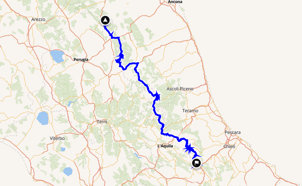 - Nationalpark Gran Sasso und Monti della Laga (Parco Nazionale del Gran Sasso e Monti della Laga) gibt es jeweils Pass- und Hochstrassen durch, ein Hammer. Sehenswert für einen kurzen Spaziergang dort das Rocca Calascio mit der Chiesa di Santa Maria della Pietà, da wird man nur beim Anschauen zum Eremiten. In der Nähe eine hübsche Unterkunft die wir hatten: Charme in Perillis http://www.charmeinperillis.it/